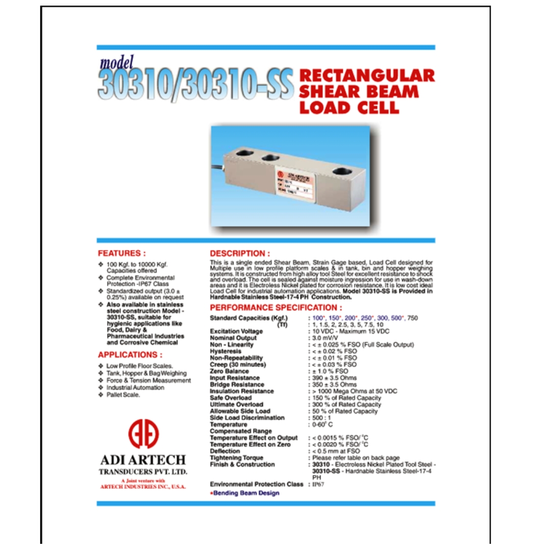• Load Cell Type: Shear Beam (as shown in above pic)