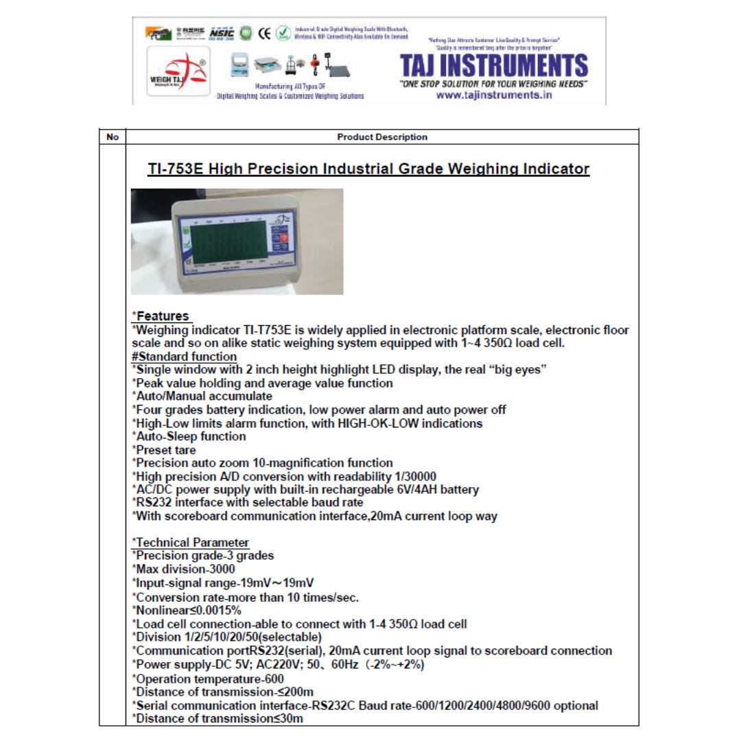 *Model:TI-T753E-PF(5ft)(1.5mtr)-4LCPremium Platform Scale