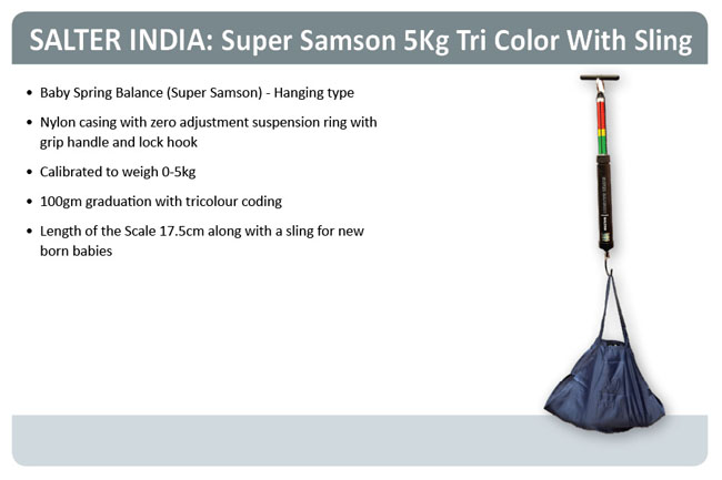 TAJ+ Salter Color Coded(Tri- Color) Tubular Spring Balance with Baby Sling Capacity:5Kg-100g For Child Health Monitoring Color Coded Tubular Spring Balance For Aanganwadi